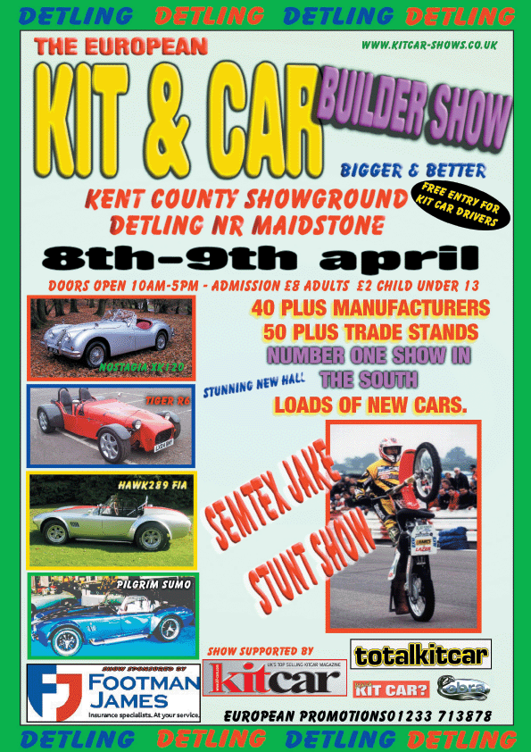 See us the Detling Kit Car show. It's run by Cookie - one of the friendliest and most professional show promotors in this industry. The first show of the year - the atmosphere is brilliant. |